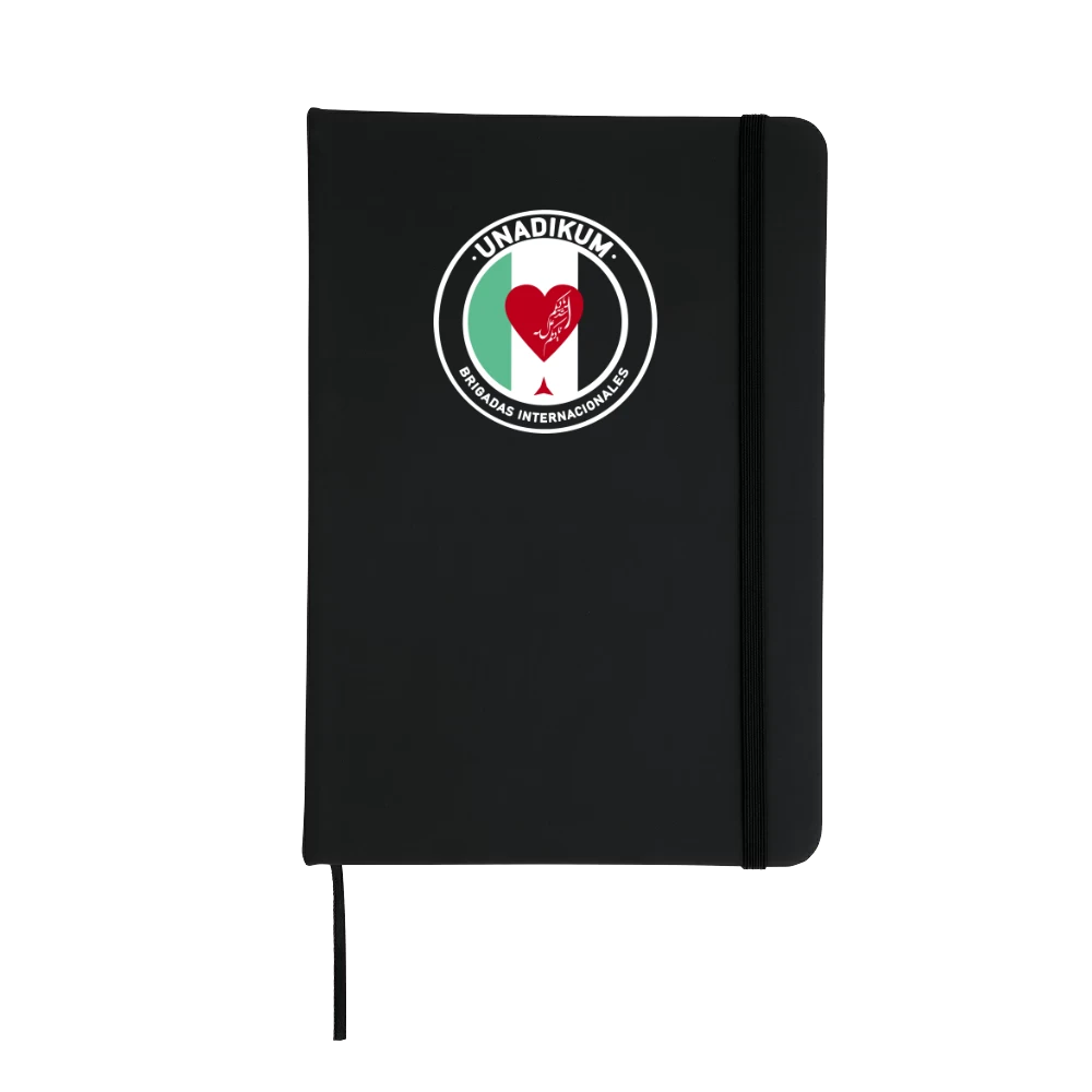 Bloc de notas tamaño A5 con 100 hojas sin líneas. Tiene tapa rígida de polipiel, marcapáginas y banda elástica.
