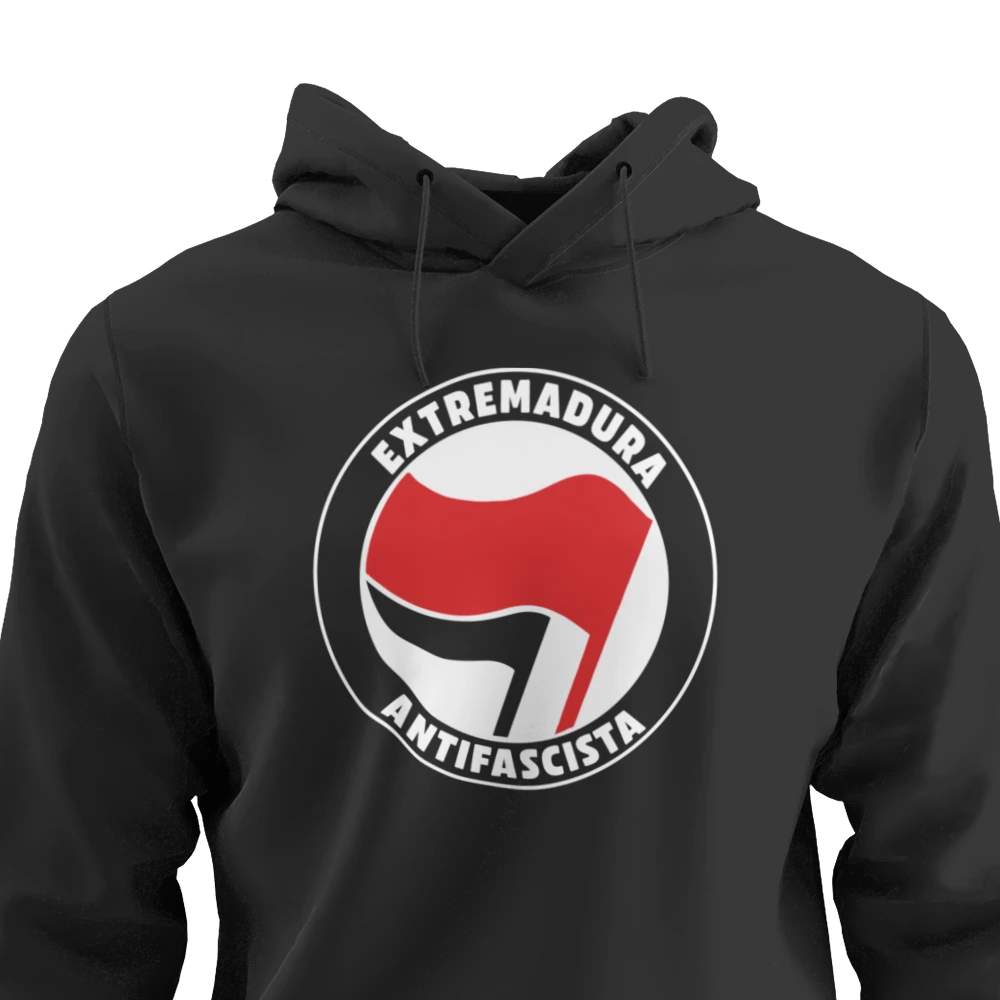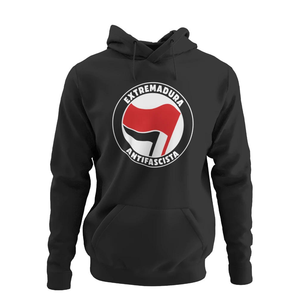 Sudadera con capucha, cordones y bolsillo tipo canguro, fabricada con mezcla de algodón y poliéster y con felpa interior perchada preencogida. Formato clásico unisex y disponible en cinco tallas distintas: S, M, L, XL y XXL.
